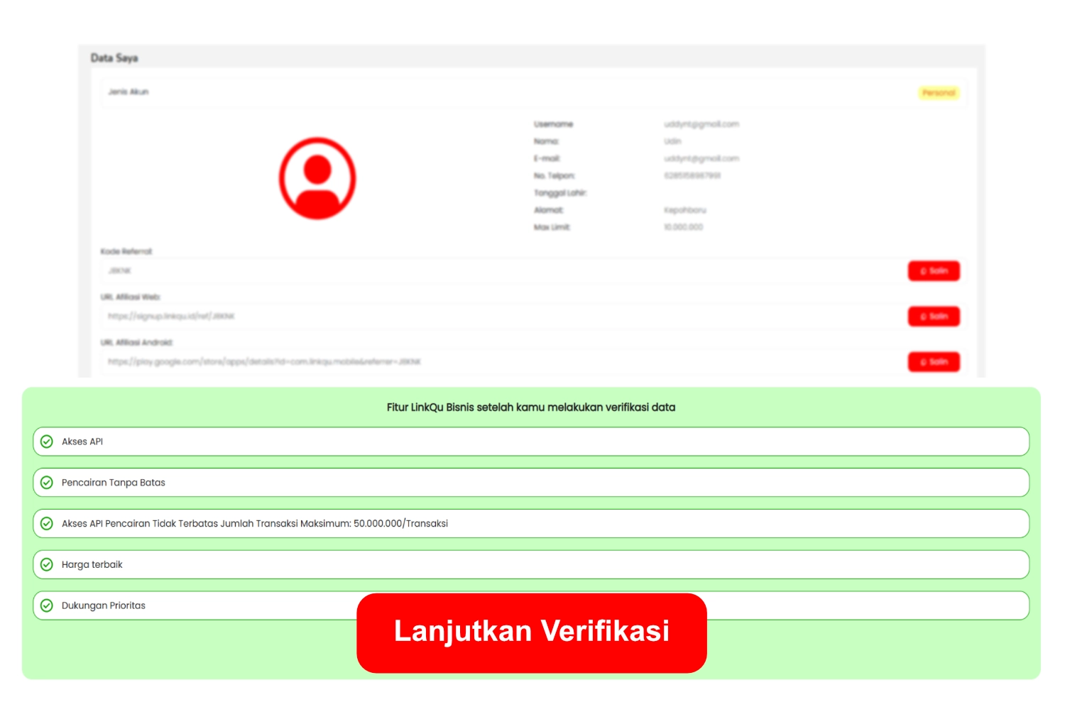 - Selesai → data akan diverifikasi oleh tim LinkQu.